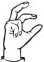 На ћирилици написано УНА КАЗНОВАЦ састоји се из 11 слова [?]. Исписано ћириличном једноручном азбуком за глувонеме: